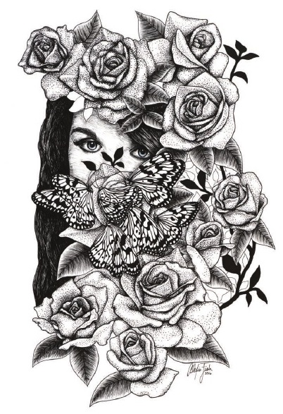 Much like her grandmother, who she says drew animals and sometimes geisha girls as a hobby, Fish loves to combine portraits, flowers and animals to create her own surrealistic works of art. "Usually my compositions are not something that would normally appear in nature," said Fish, who doesn't draw realistic portraits or still lifes. She likes adding an element of fantasy to much of her work. Although Fish loved art from a young age, spending extracurricular activities in the art room and enrolling in after-school art programs at Lafayette College while still in high school in New Jersey, she admits she needed a nudge from her husband to peruse her dreams of being an artist even further. "My husband for a while was like, 'You need to do something with it. You can keep drawing pictures all you want, but if you don't do anything with them, what's the point?'" said Fish. With his help, she enrolled in a mentorship program with an established artist that gave her the push she needed to set goals for herself. In 2015, she got her website up and running, and started selling prints. Around the same time, Fish signed up to be a vendor at the Doylestown Arts Festival to sell her initial batch of prints. Nervous as he prepared for her first big show, she even had to research how to set up her first booth, but admits she did pretty well. Since then, she has been focusing on selling her prints and originals on her website, and has done a couple shows, including a few tattoo conventions. This is especially exciting for her considering she had an apprenticeship with a tattoo artist a few years ago, and sees herself going down that path eventually. "A goal would be doing tattoos at some point, because that's something I've always been interested in," says Fish. She plans to start another tattoo apprenticeship sometime in the near future. Fish works a daytime job in Doylestown, but most nights and weekends you can find her in her apartment, listening to books on tape or playing a Disney movie she's seen hundreds of times in the background while she works. She considers her art her second full-time job. Fish is currently listening to a Harry Potter book while she works on some commissioned pieces, which she loves doing for people. "The people contacting me are obviously not artists themselves, so once they give me ideas, it's always been really rewarding to get their reaction after I've finished," observed Fish. "Especially with things that are really near and dear to them." Eventually Fish hopes to be working full time as an artist. Whether that's being a tattoo artist, continuing to do commissioned art, or selling her own original compositions, she hopes to eventually support herself solely by her artwork. And who knows, maybe someday she will be someone else's artistic mentor, if she isn't already."